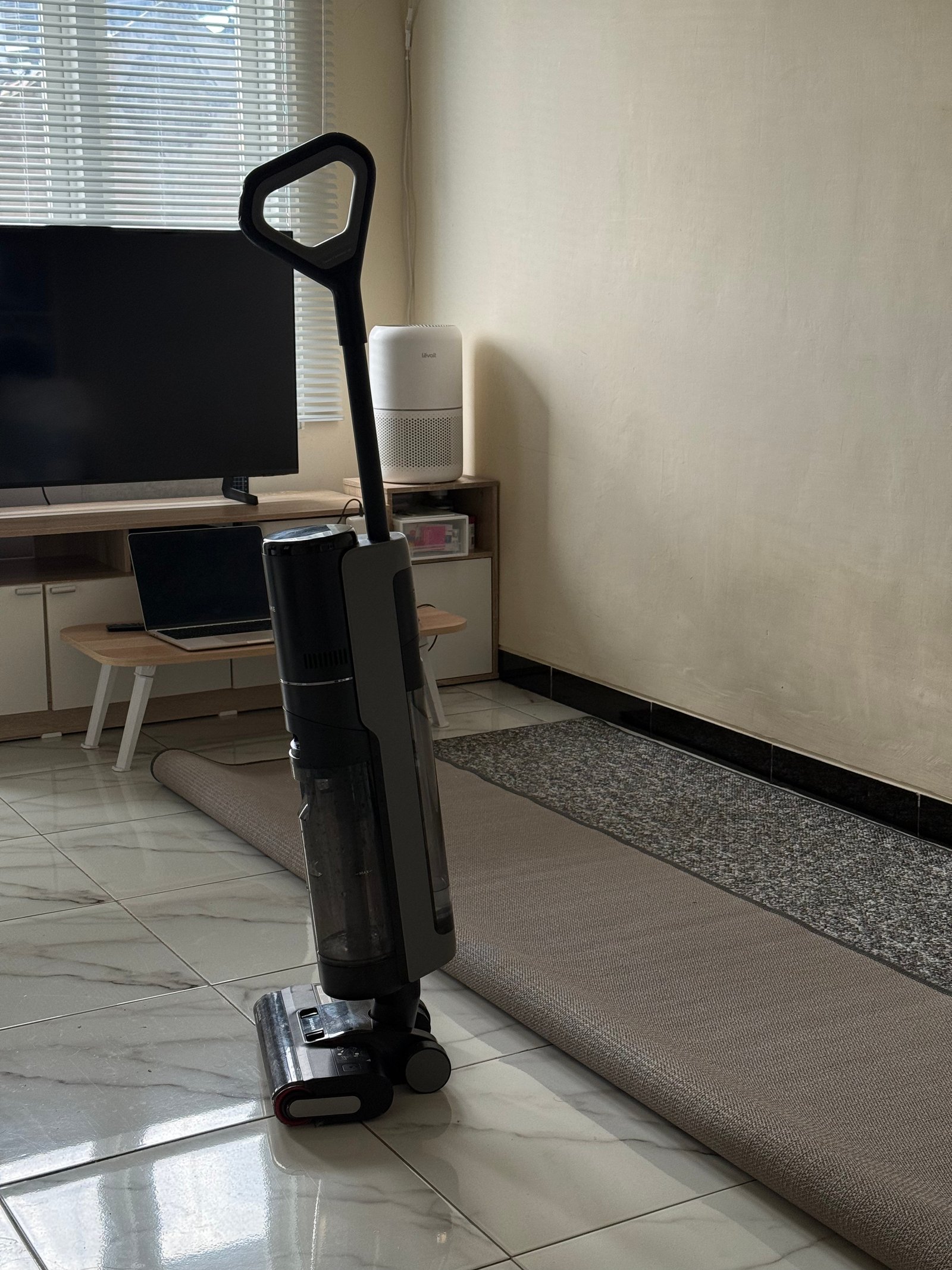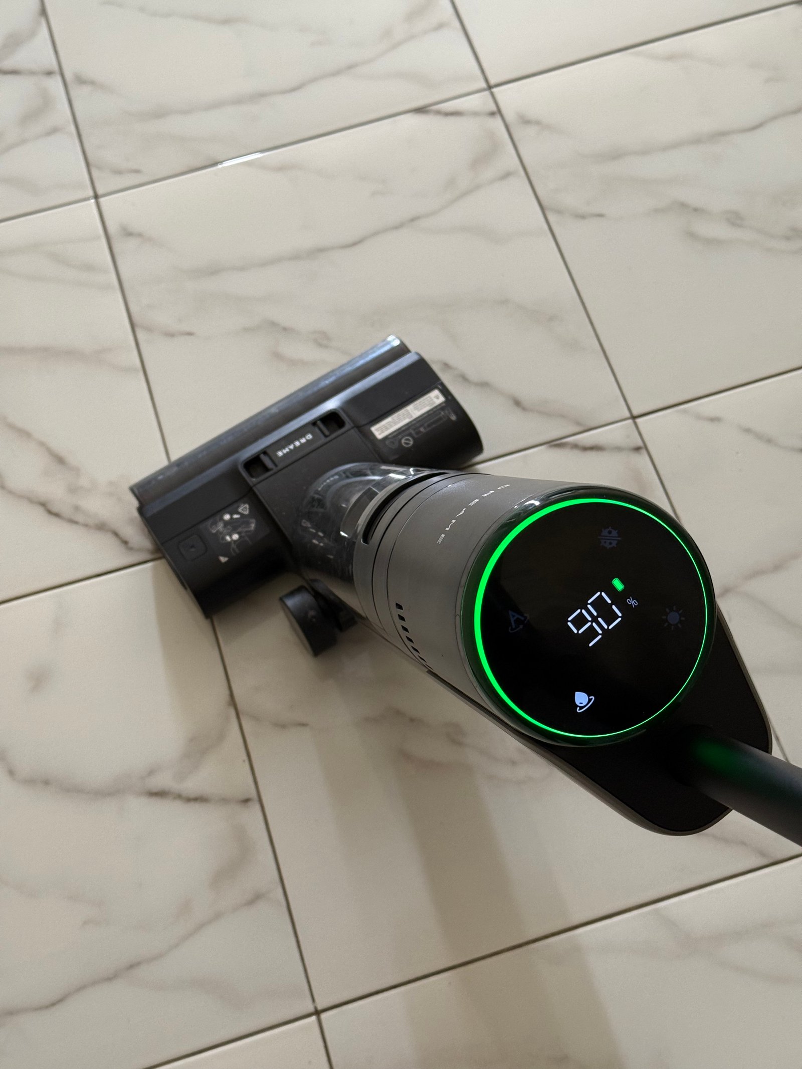 Pertama kali dipakai, rasanya cukup satisfying. Vacuum ini terasa solid, modern, dan surprisingly gampang digunakan. Tinggal nyalakan, dorong perlahan, dan dia langsung bekerja—menyedot debu sekaligus mengepel dalam satu waktu. Di lantai granit rumahku, hasilnya langsung kelihatan. Bukan cuma bersih, tapi ada efek kinclong yang bikin lantai terlihat seperti baru dipel dengan effort ekstra.